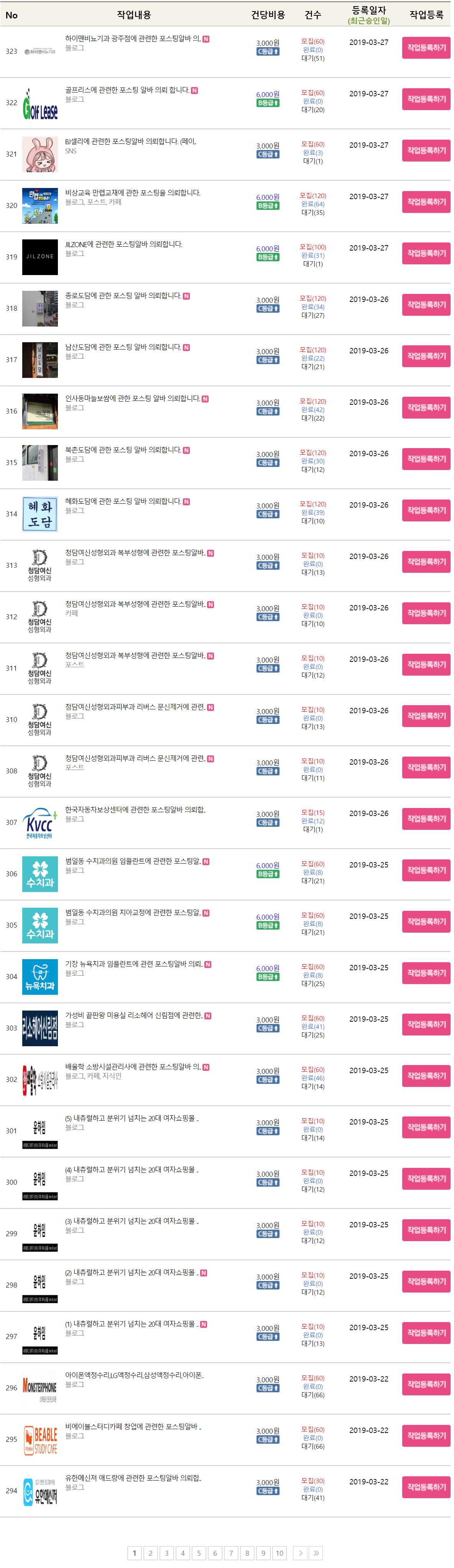 아래는 광고 작업 내용과 해당 작업(?)이라는 블로그나 홈페이지에 광고글 포스팅을 했을 때 지급되는 보상금이다.