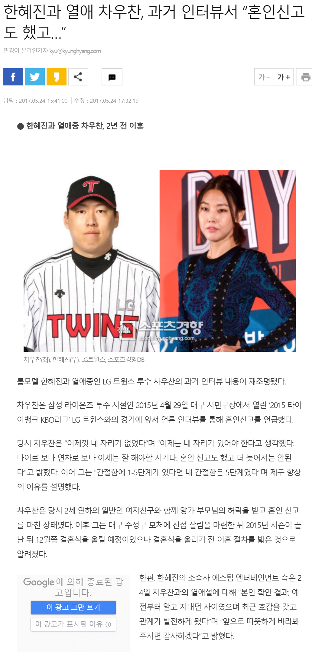 물론 뉴스에서는 차우찬의 결혼 및 이혼 전력이 재조명되면서 본업보다 다른 분야의 소식으로 기사에 자주 나오는 차우찬도 만만치 않은 관심을 받고 있지만