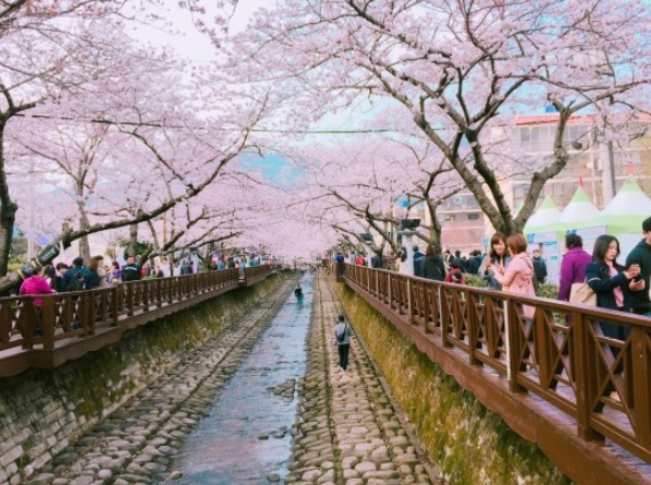 군항제는 진해(경남 창원시 진해구)일대에서 4월 초에 시작하여 2주간 벚꽃의 향연을 즐길 수 있다.